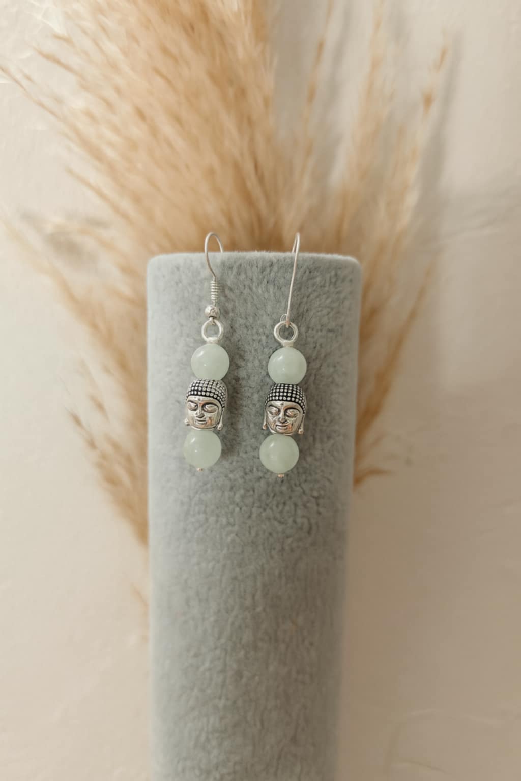 BOUCLE D'OREILLE AVENTURINE VERTE 8 mm TÊTE DE BOUDDHA
