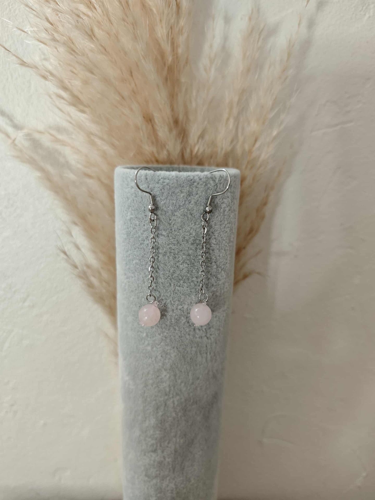 BOUCLE D'OREILLE QUARTZ ROSE