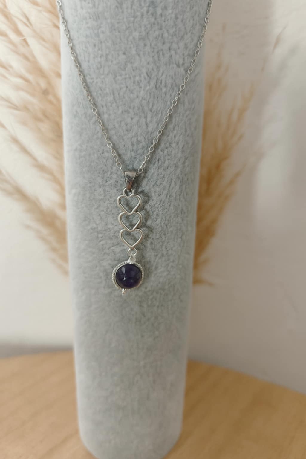 COLLIER PENDENTIF 3 COEURS AVEC AMETHYSTE 8mm