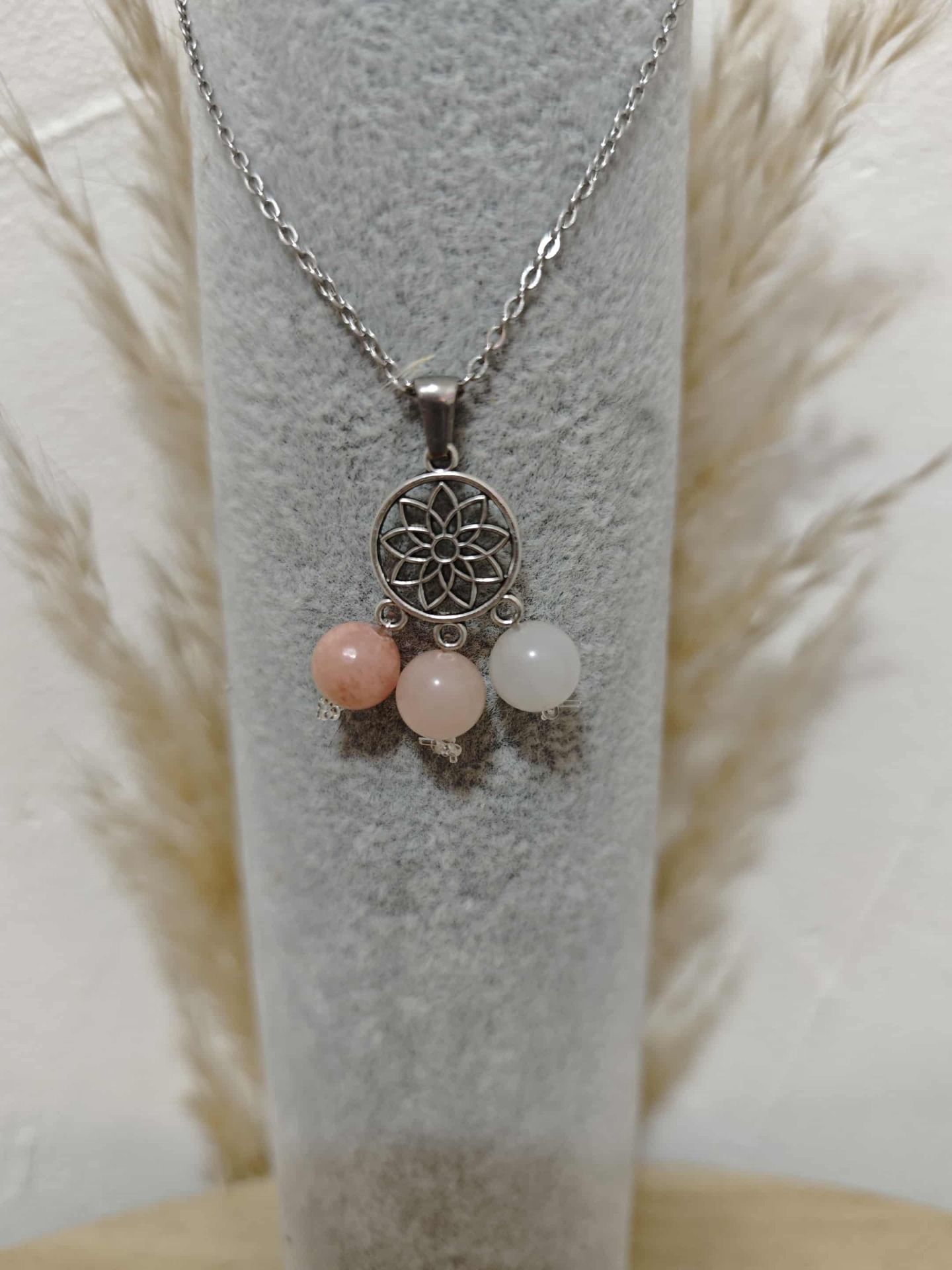 COLLIER PENDENTIF GRAINE DE VIE AVENTURINE ROSE 8mm