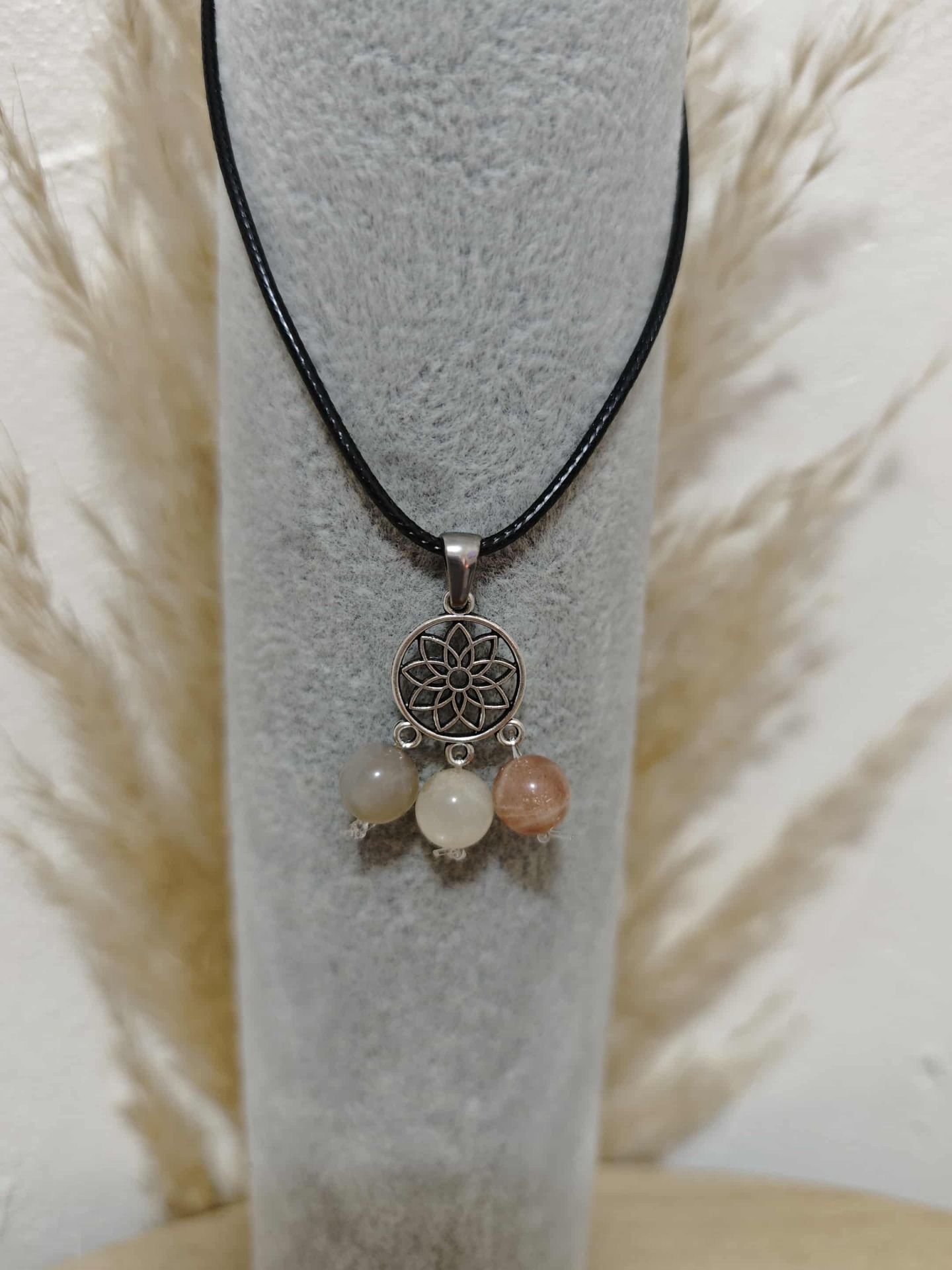 COLLIER PENDENTIF GRAINE DE VIE PIERRE DE SOLIEL 3 COULEUR 8mm